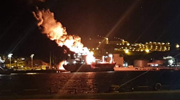 “Petkim İskele 5’te bu akşam saat 23:20 civarında, İtalya bandıralı, Synzania adlı gemiye sıvı hidrokarbon dolumu için yapılan bağlantı sırasında henüz belirlenemeyen bir nedenle yangın meydana gelmiştir.