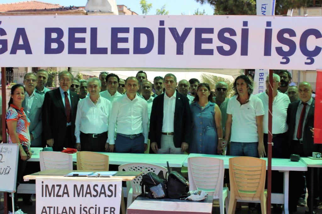 Heyet, işçilerin işe alınması için açılan imza defterini imzaladıktan sonra çadırda işçilerle görüştü. İşçilerin temsilcilerinin kendisine anlattığı sorunları ilgiyle dinleyen Başkan Kırkpınar yaşanan sıkıntıların çözümüne yönelik olarak ellerinden gelen desteği vereceğini, Aliağa Belediye Başkanı Serkan Acar’ın yol açtığı bu durumu yine kendisinin çözebileceğini belirterek daha fazla kayıtsız kalmaması gerektiğini ifade etti.