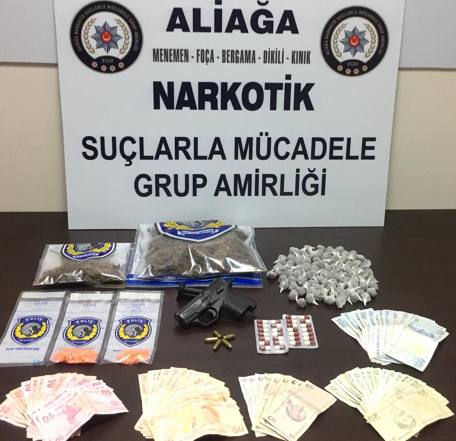Aliağa ve çevre ilçelerde, narkotik suçlarla mücadele edilmesi, toplumun ve özellikle gençlerin narkotik maddelerden uzak durmasını sağlamak, bu tür işlerle uğraşanların suç gelirlerinin kesilmesi amacıyla, yakın zamanda Aliağa İlçe Emniyet Müdürlüğü bünyesinde kurulan ve Aliağa, Foça, Menemen, Dikili, Bergama ve Kınık İlçelerini de içine alan bir sorumluluk sahasında görev yapan, Narkotik Suçlarla Mücadele Grup Amirliği tarafından;