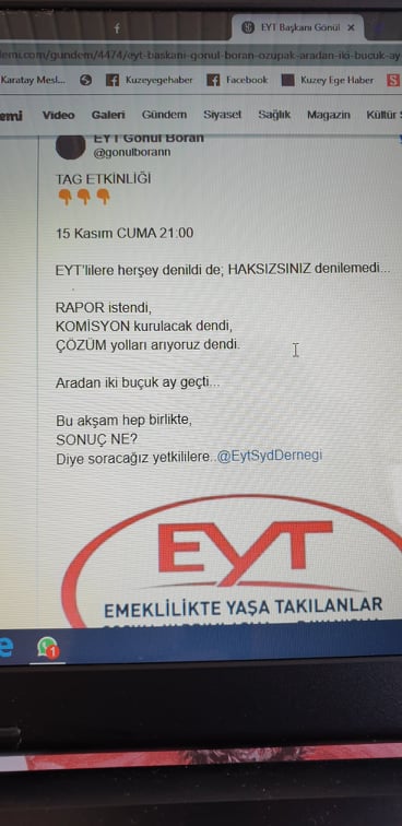 KUZEYEGEHABER-EYTSYD Derneği Başkanı Özüpak, Twitter hesabından yaptığı paylaşımla bütün EYT’lilere çağrıda bulundu.
