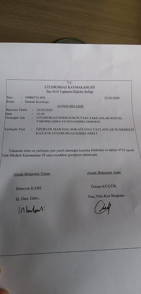 Lüleburgaz EYT SYD Dernegi hoş geldin aramıza. Özcan KÜÇÜK başkanım hayırlı olsun. Her geçen gün daha da büyüyen EYT ailesi büyümeye devam ediyor.
