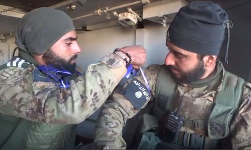 Anadolu Ajansı’nın geçtiği görüntülerde bazı ÖSO’cuların kolunda IŞİD terör örgütünün armaları göze çarptı. Ajans daha sonra bu görüntüleri kaldırdı.