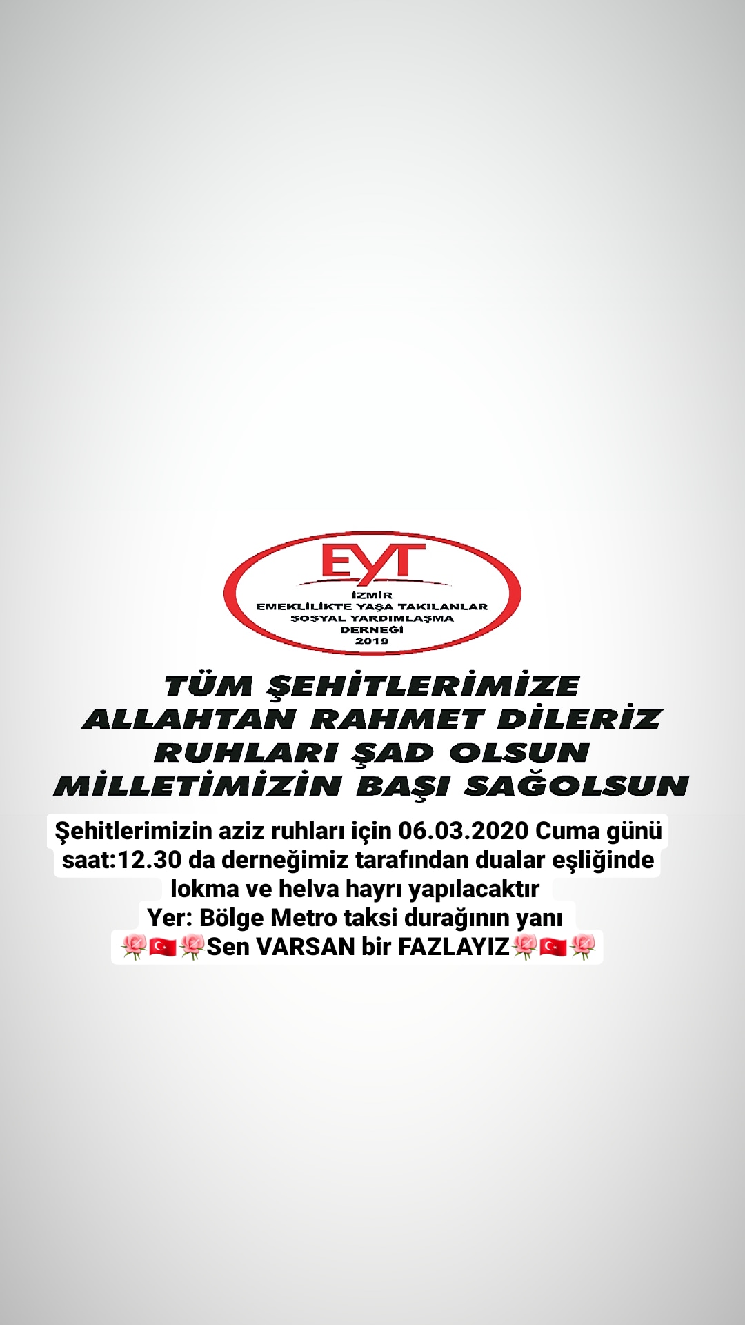 KUZEYEGEHABER-EYT İzmir Derneği Yönetimi Şehitlerimiz için yarın(Cuma) lokma ve helva hayrı yapacak.