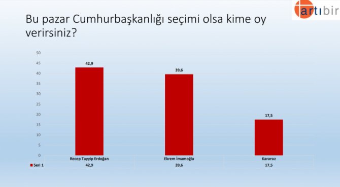 Ankette, Erdoğan 42.9 oranında oy alırken, İmamoğlu 39.6 ile farkı açtırmadı..