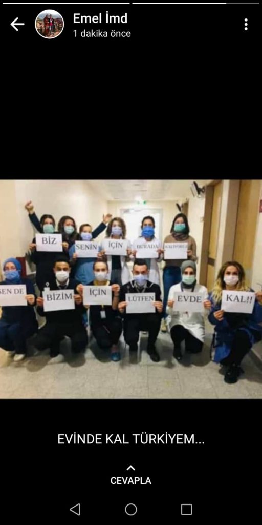 Her iki sağlık biriminin çalışanları ellerinde; “BİZİM İÇİN LÜTFEN EVDE KALIN” ve “BİZ SENİN İÇİN BURADA KALIYORUZ, SENDE BİZİM İÇİN LÜTFEN EVDE KAL” yazılı kartonlarla vatandaşlara seslendiler.