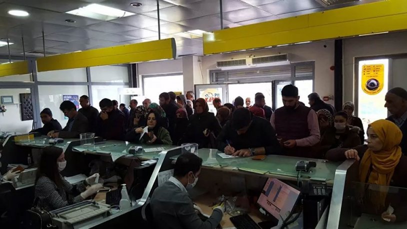 Kalabalıkta risk grubunda bulunan yaşlılar da dikkat çekiyor. Vatandaşların burun buruna sıra beklediği şubelerde salgın nedeniyle durum bir hayli ciddi.