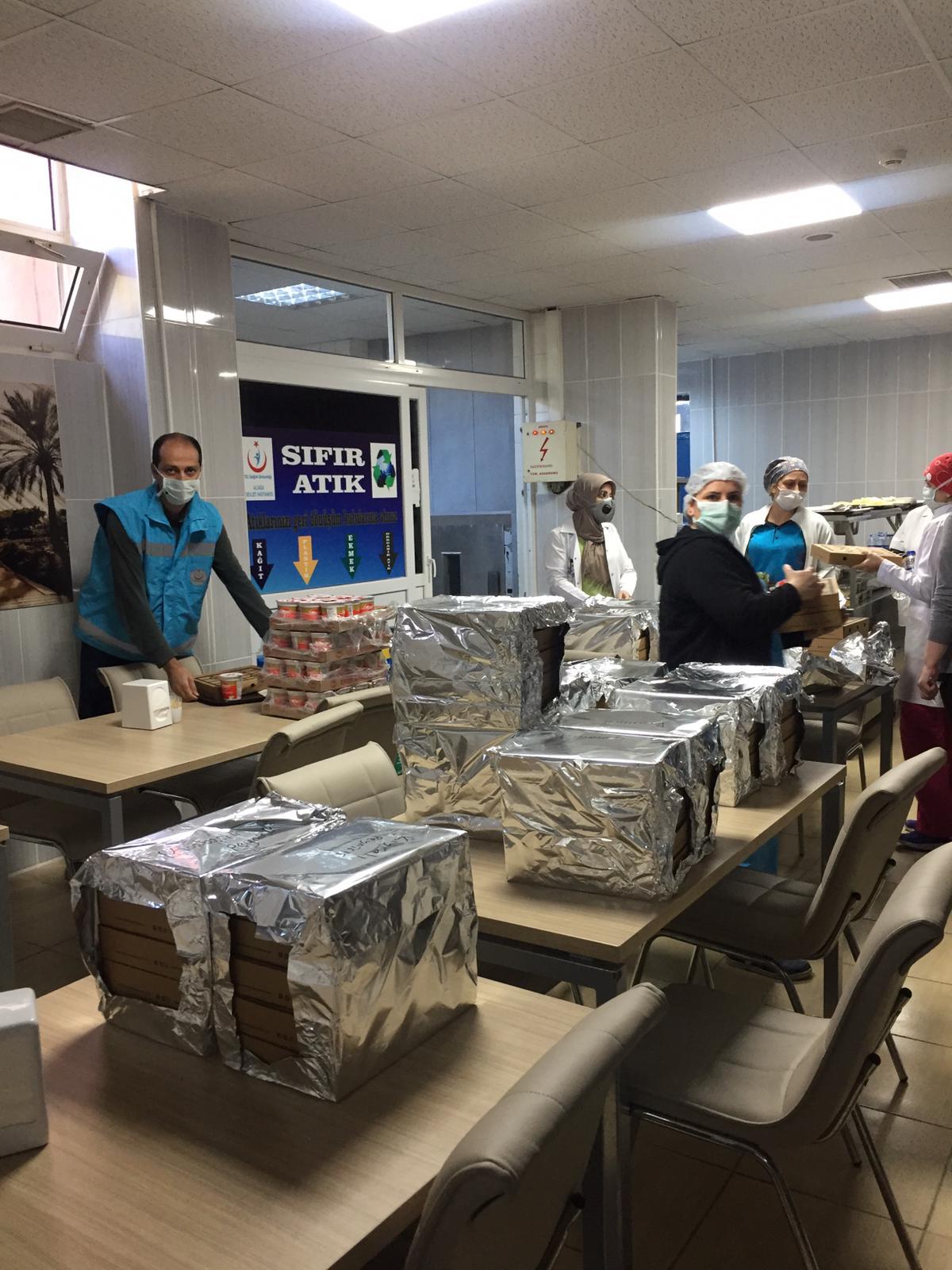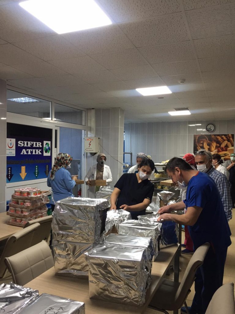 Özel olarak bir restaurantta hazırlanarak paketlenen yemekler, hastanede çalışan tüm personellere dağıtıldı. Başkan Kamil Önal, bu etkinlik ile sağlık çalışanlarına destek olmayı, onlara moral vermeyi amaçladıklarını belirtti.