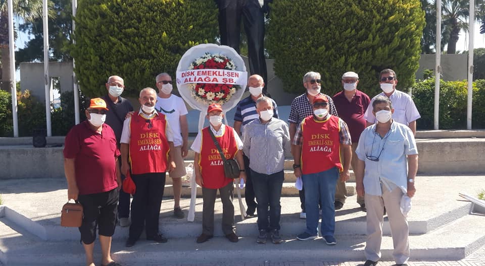 KUZEYEGEHABER-DİSK’e bağlı Emekli-Sen Aliağa Şubesi, Dünya Emekliler Günü ve Emekliler Haftası nedeniyle Cumhuriyet Meydanındaki Atatürk Anıtına Çelenk bıraktı.