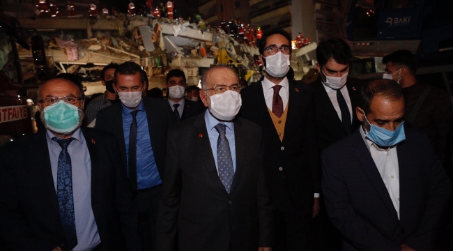 Saadet Partisi lideri Karamollaoğlu, depremde hasar gören Bayraklı İlçesi Mansuroğlu Mahallesi’ndeki enkaz alanına gelerek depremzede