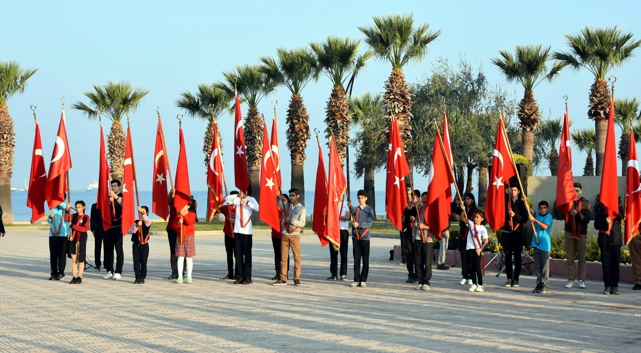 Saat 09.05’te deniz ve itfaiye araçlarının vereceği siren sesi ile iki dakikalık saygı duruşunu takiben istiklal marşı hep bir ağızdan okunacak. İstiklal Marşı bitiminde bayraklar yarıya indirilecek.