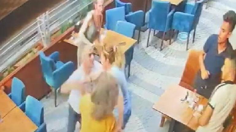Görüntülerde şiddete uğrayan kadını yine arka masada oturan 2 kadının korumaya çalışırken korkusuzca E.Ç.’ye engel olmaya çalıştığı görülürken, o sırada yan masada oturan 2 gencin ise yaşananları sadece izlediği görüldü. Ayrıca görüntüde E.Ç.’nin kendisine engel olmak isteyen 2 kadına saldırıp olay yerinden kaçtığı yer aldı.