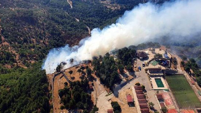 Yamanlar Dağı Gençlik Merkezi yakınındaki yangına ekiplerin havadan ve karadan müdahalesi sürüyor..
