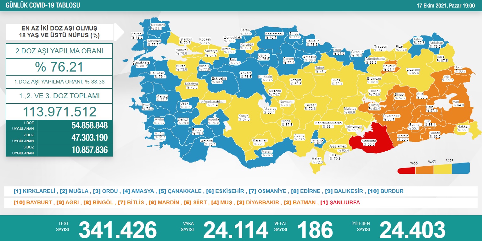 KUZEYEGEHABER-Sağlık Bakanlığı, Türkiye’nin 17 Ekim 2021 koronavirüs tablosunu açıkladı.