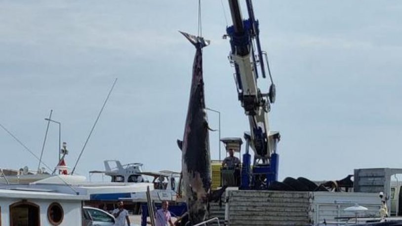 Akdeniz Üniversite Su ürünleri Fakültesi Öğretim üyeleri ve Antalya Büyükşehir Belediyesi Deniz ve Kıyı Yönetimi Şube Müdürlüğü personeli işbirliğiyle yalancı katil balina ölüsü balıkçı barınağına getirildi.