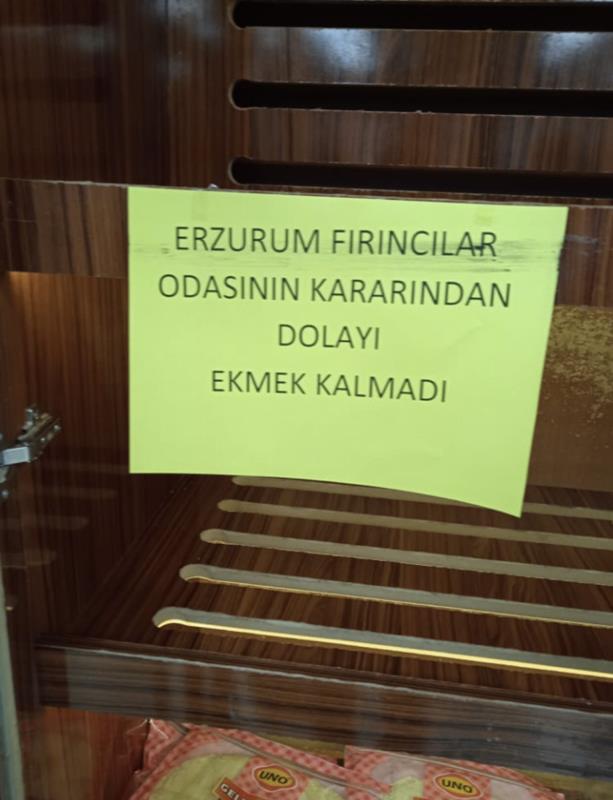 KUZEYEGEHABER-Erzurum’da fırıncılar un ve diğer girdilere gelen zamlarla birlikte ekmek fiyatlarına tepki olarak ekmek üretimini durdurdu. fırın önlerinde ekmek kuyrukları oluştu.