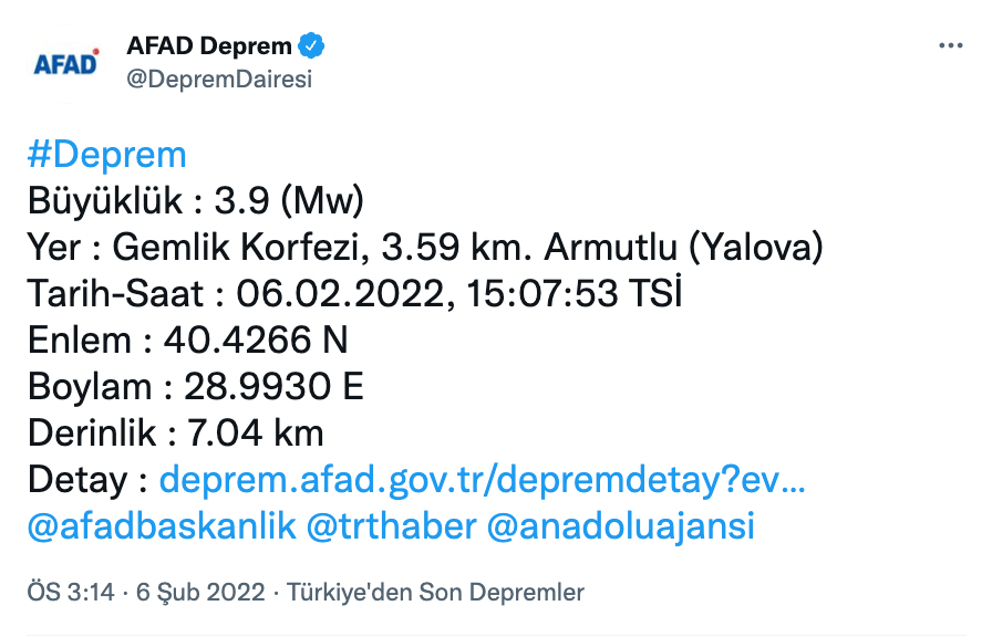 Deprem üssünün Yalova’nın Armutlu ilçesine bağlı Kapaklı köyü olduğu duyuruldu.
