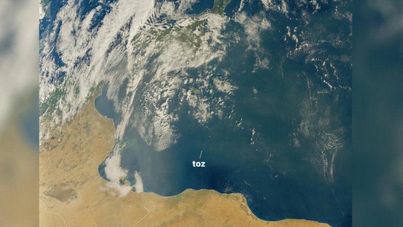 15 Şubat 2022’de kaydedilen görüntüde Sahra Çölü’nden gelen dev toz bulutunun Akdeniz’i geçerken İtalya’nın güneyini ve Malta’yı içine aldığı anlaşılıyor.