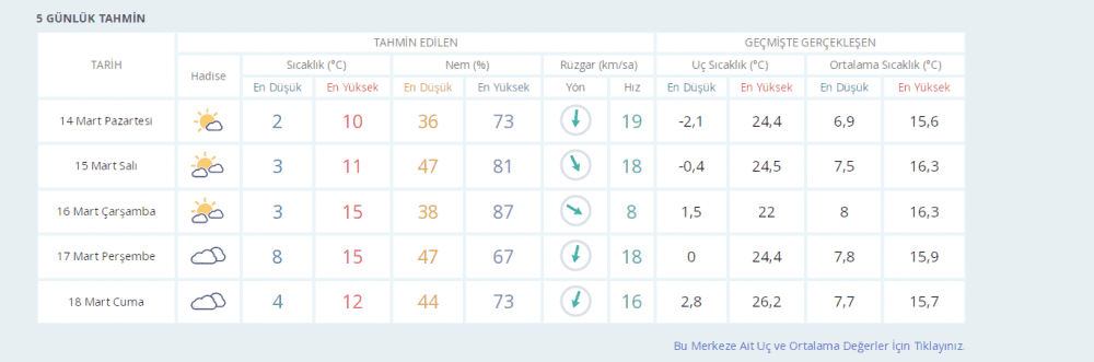 Pazartesi (bugün) termometreler 10’u, Salı günü 11’i, Çarşamba günü 15’i, Perşembe günü 15’i, Cuma günü ise 12’yi gösterecek. Açıklanan verilere göre 5 günlük hava raporunda yağış olmayacak. .