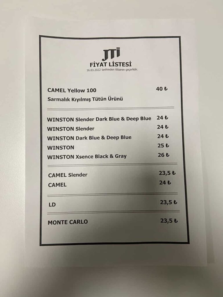 KUZEYEGEHABER-13 Mart tarihinde Philip Morris grubuna gelen zammın ardından JTI grubu sigaralarında da fiyat artışı yaşandı. Türkiye Tekel Bayiler Platformu Başkanı Özgür Aybaş, 2’şer lira yansıyan zamlı listeyi paylaştı.