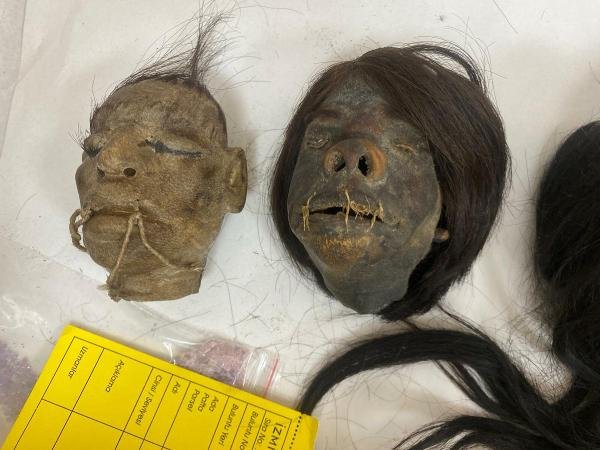 Eserler arasında Peru ve Amazon’un derinliklerinde yaşayan Jivaro yerlilerinin kesip özel işlemlerden geçirerek küçülttükleri, ‘tsantsa’ olarak adlandırılan insan başları dikkat çekti.