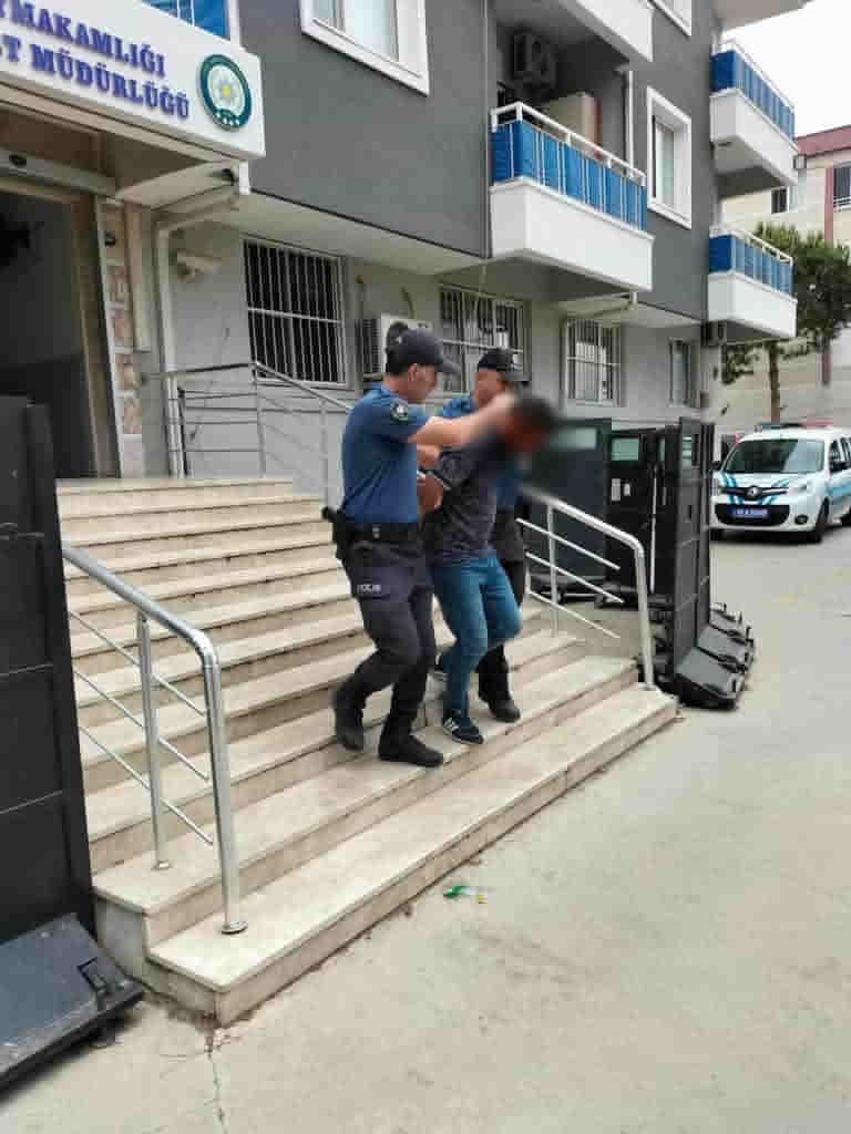 KUZEYEGEHABER-Geçtiğimiz gün Aliağa Merkezinde bulunan Mustafa Ekmekçi Meydanında polis memurlarıyla tartışıp bıçak çeken M. K. adlı şahıs tutuklandı.