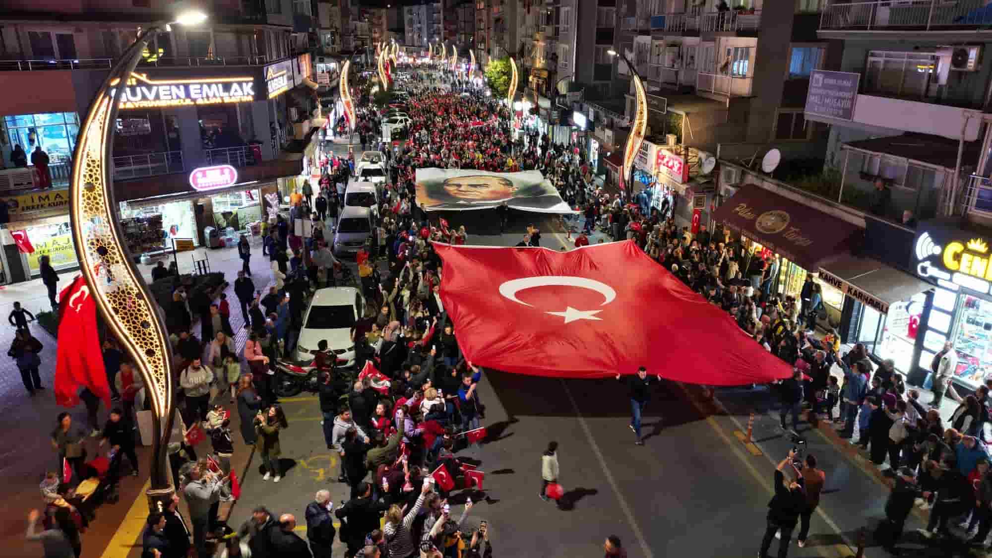 Aliağa Belediyesi’nin milli bayramlarda düzenlediği ve muhteşem görüntülere sahne olan kortej yürüyüşü ve fener alayı cumhuriyetin 99. yılında da kentin sokaklarını renklendirdi. Kentin dört bir yanında bayram coşkusu yaşanırken Cumhuriyet Meydanı’nda 30 yıl aradan sonra ilk kez bir halk konserinde sahne alan 90’ların efsane gruplarından İzel-Çelik-Ercan meydanı dolduran binlerce Aliağalıya unutulmaz bir bayram sevinci yaşattı.