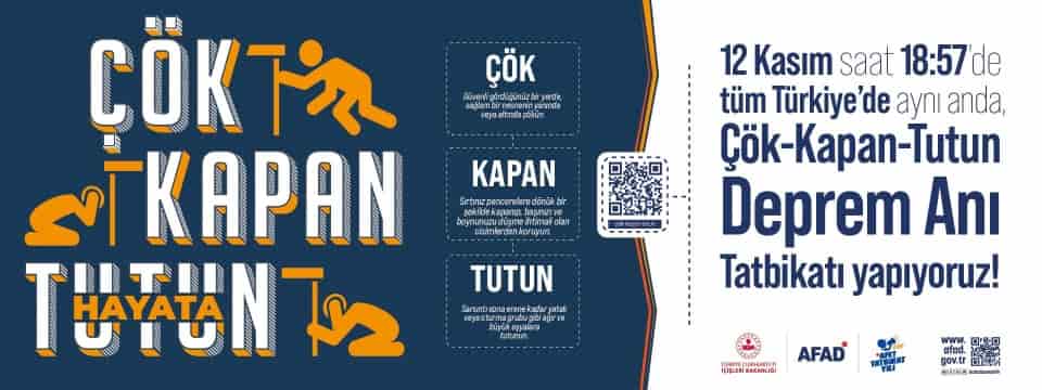 KUZEYEGEHABER-Afet ve Acil Durum Yönetimi Başkanlığı’nın (AFAD) koordinasyonunda, 12 Kasım 1999 Düzce Depremi’nin yıl dönümü nedeniyle bugün saat 18.57’de ülke genelinde “Çök-Kapan-Tutun” deprem tatbikatı yapılacak.