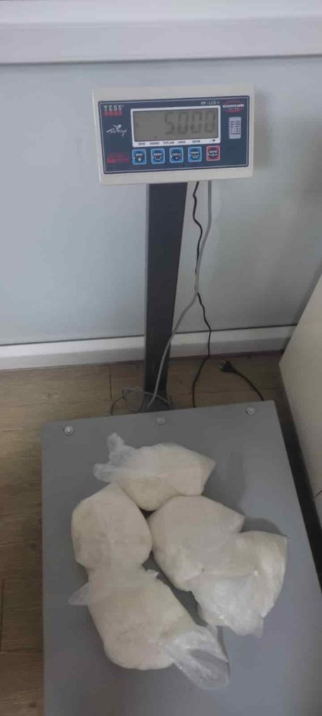 “İzmir Narkotik Suçlarla Mücadele Şube Müdürlüğü ve Aliağa Narkotik Suçlarla Mücadele Grup Amirliği görevlilerince 14.11.2022 günü saat 00.45 sıralarında Aliağa İlçesi Çaltılıdere Mahallesi Aliağa-Bergama yolu üzerinde durdurulan 34… plakalı araçta yapılan aramada 5 kg metamfetamin madddesi ele geçirilmiştir.