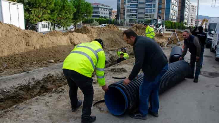 KUZEYEGEHABER-Menemen’e 2019 yılından bu yana yaklaşık 90 milyon liralık yatırım yaparak ilçenin altyapısını güçlendiren İZSU Genel Müdürlüğü, şiddetli yağışlarda yaşanabilecek olumsuzlukların önüne geçmek için de yağmursuyu hattı imalatlarını sürdürüyor.