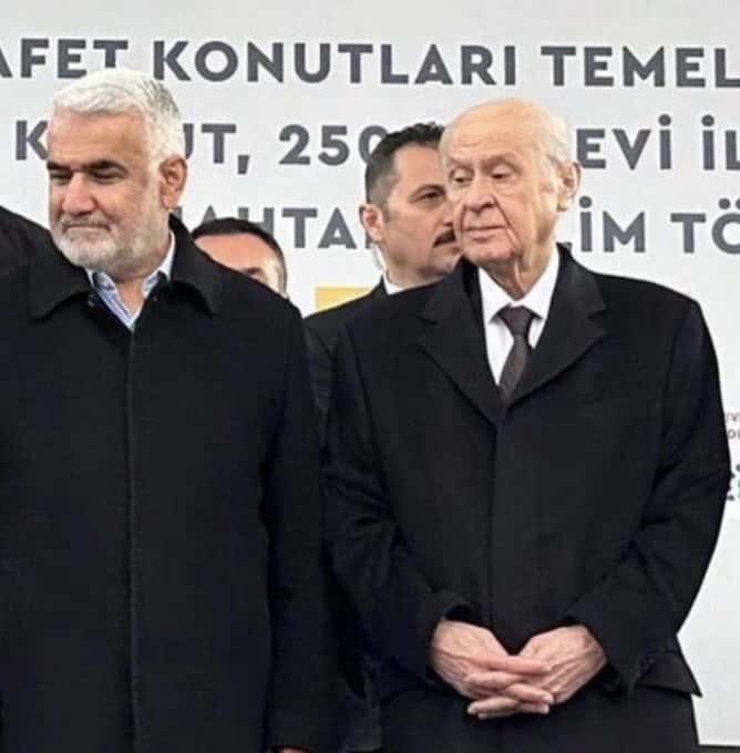 “MHP ve HÜDA PAR genel başkanları Diyarbakır’da Erdoğan için oy istiyorlar. Bu fotoğraf Türk siyasetine Türk milliyetçiliğine ihanetin fotoğrafı olarak geçecek…”