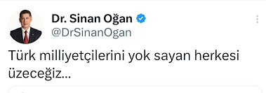 Oğan’ın açıklamasının ardından milliyetçi gruplardan tepkiler gecikmedi. Türküz, Türkçüyüz ve Atatürkçüyüz (TTA) isimli grup, Twitter’dan açıklama yaparak “Sinan Oğan, Erdoğan’ı destekleyeceğini açıkladı! BİZ ERDOĞAN’I DESTEKLEMİYORUZ! Hiçbir zaman “Biz her türlü milliyetçiliği ayaklarının altına almış bir iktidarız.” diyen Erdoğan’ı desteklemeyiz!” dedi…