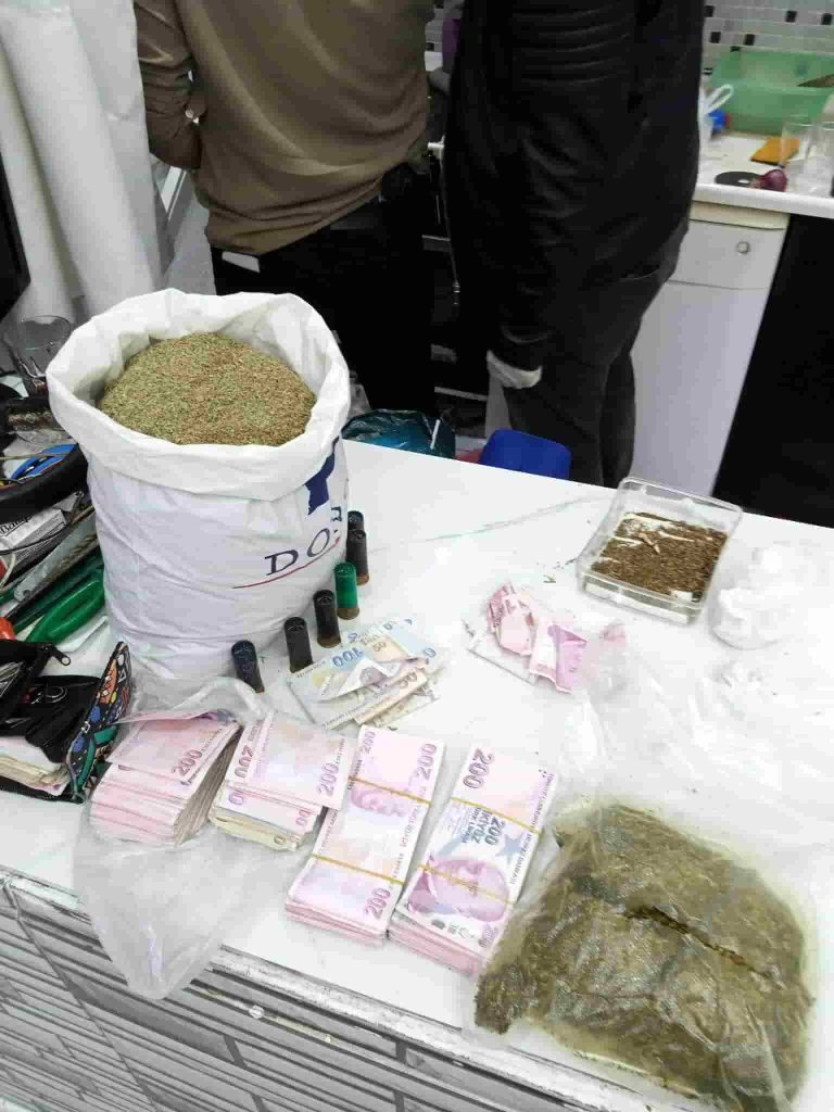 Çarşı ve mahalle bekçileri de operasyona destek verdi. Evde yapılan aramada 2 kilogram bonzai ile uyuşturucu satışından elde edildiği değerlendirilen 84 bin TL ele geçirildi. Evde bulunan şüpheliler H.K., V.E. ve İ.K., gözaltına alındı. Şüphelilerin polisteki işlemlerinin sürdüğü bildirildi…