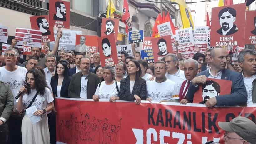 Eyleme Beyoğlu Belediye Başkanı İnan Güney, CHP İstanbul İl Başkanı Özgür Çelik, DEM Parti Eş Genel Başkanı Tülay Hatimoğulları, emek meslek örgütleri ve Gezi aileleri katıldı.
