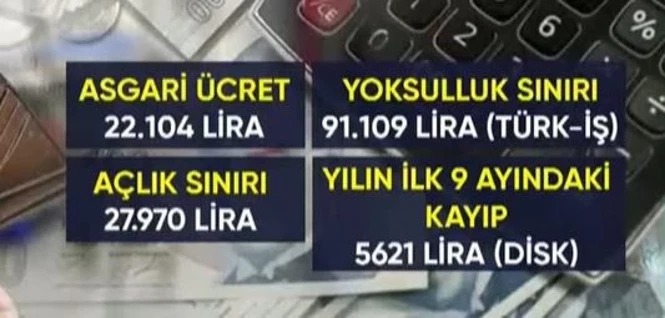 Ancak Geçer, bu rakamın bile açlık sınırının altında kalacağını aktardı. Türk-İş verilerine göre açlık sınırı 27.970 TL, yoksulluk sınırı ise 91.109 TL seviyesinde. Mevcut asgari ücretin 22.104 TL olduğunu hatırlatan Geçer, yılın ilk 9 ayında yaşanan kaybın 5.621 TL olduğunu belirtti. Şubat ayında alınacak zamlı maaşın da açlık sınırının altında kalacağını ifade eden Geçer, “Yoksulluk sınırının neredeyse dörtte biri olacak” dedi.