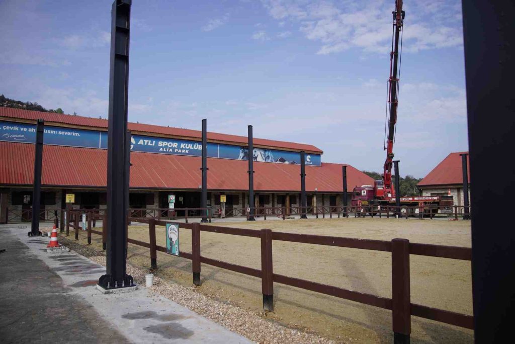 KUZEYEGEHABER-Aliağa Belediyesi’nin özel gereksinimli bireylerin sosyal, psikolojik ve fiziksel gelişimlerine katkı sunmak amacıyla faaliyete sunduğu Alia Park Atla Terapi ve Rehabilitasyon Merkezi’nde kapalı manej yapımı hızla ilerliyor. Proje ile atla terapi ve binicilik eğitimlerinin yılın 12 ayı kesintisiz olarak sürdürülmesi hedefleniyor.