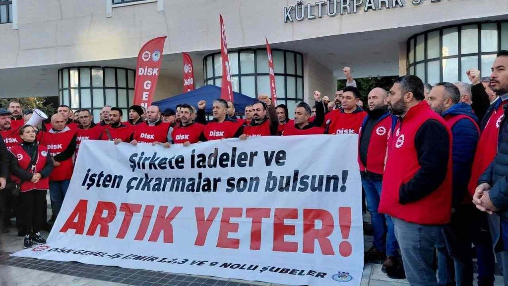 KUZEYEGEHABER-İzmir Büyükşehir Belediyesi’nde çalışanlar, ödenmeyen yan haklar ve fazla mesai alacakları ile toplu işten çıkarmalara karşı mücadeleye devam ediyor. DİSK Genel-İş Sendikası İzmir 1, 2, 3 ve 9 No’lu şubelerde örgütlü binlerce İZBB emekçisi, dün “Çıplak maaşa çıplak ayakla yürüyoruz” eylemlerine başlamıştı.