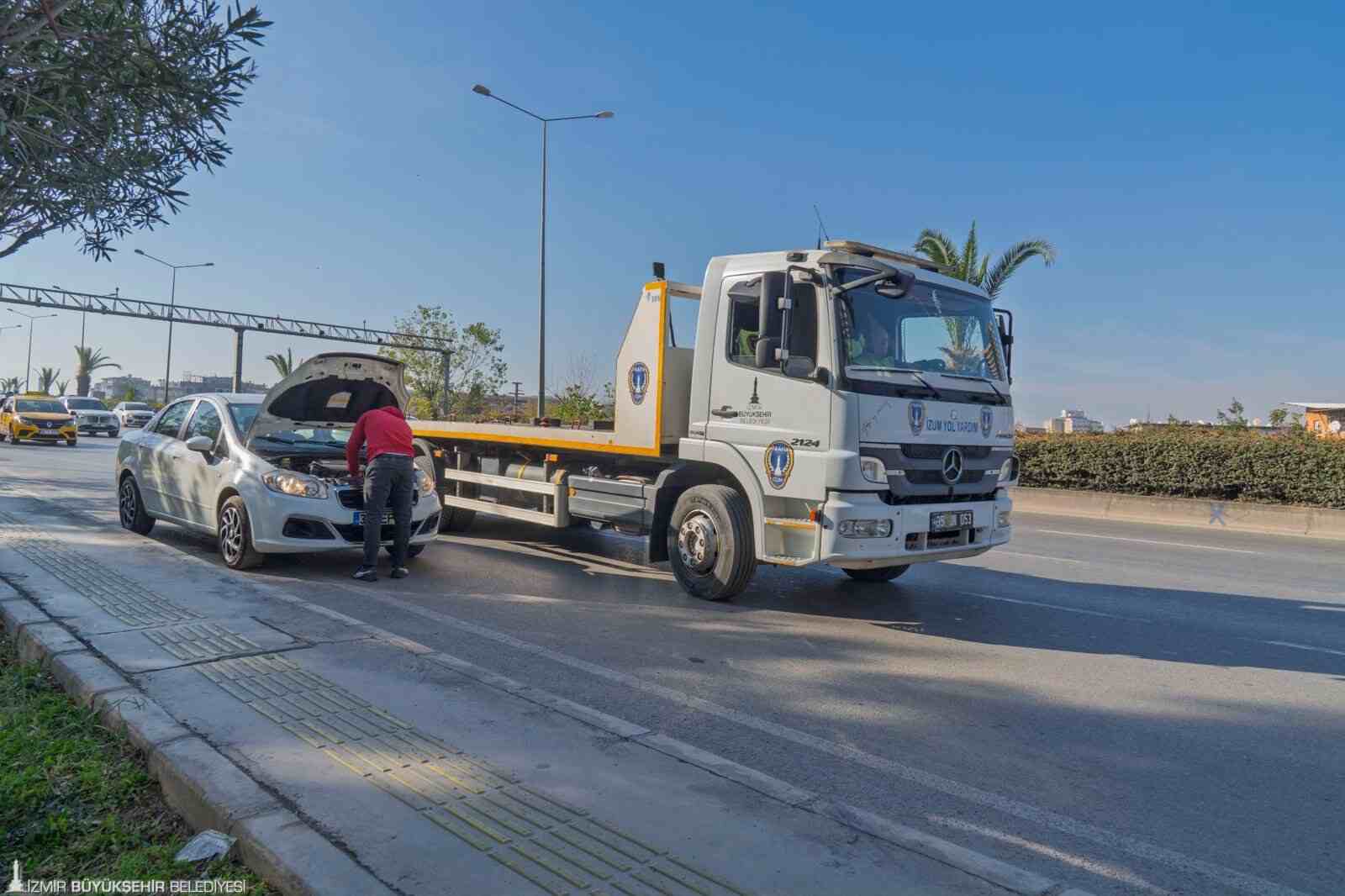 İzmir Büyükşehir Belediyesi, 2020’den bu yana 2 çekici aracıyla arızalı veya kazalı araçları trafiğe engel olmayacak şekilde çekiyor. Hafta içi sabah 07.00-11.00 ve akşam 16.00-20.00 saatleri arasında ücretsiz hizmet veren ekipler, İZUM, polis veya 153 Hemşeri İletişim Merkezi’nden gelen ihbarlara göre anında müdahale ediyor.