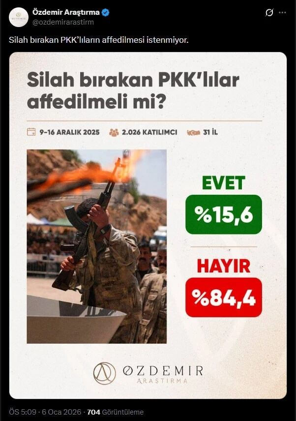 Süreçte en çok merak edilen konu ise silah bırakan PKK’lılara ne olacağı… Özdemir Araştırma bu soruyu vatandaşlara sordu.