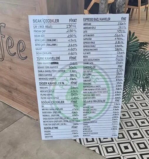 Listedeki fiyatlar paylaşımı görenleri de şaşırttı. Bazı fiyatlar şöyle: