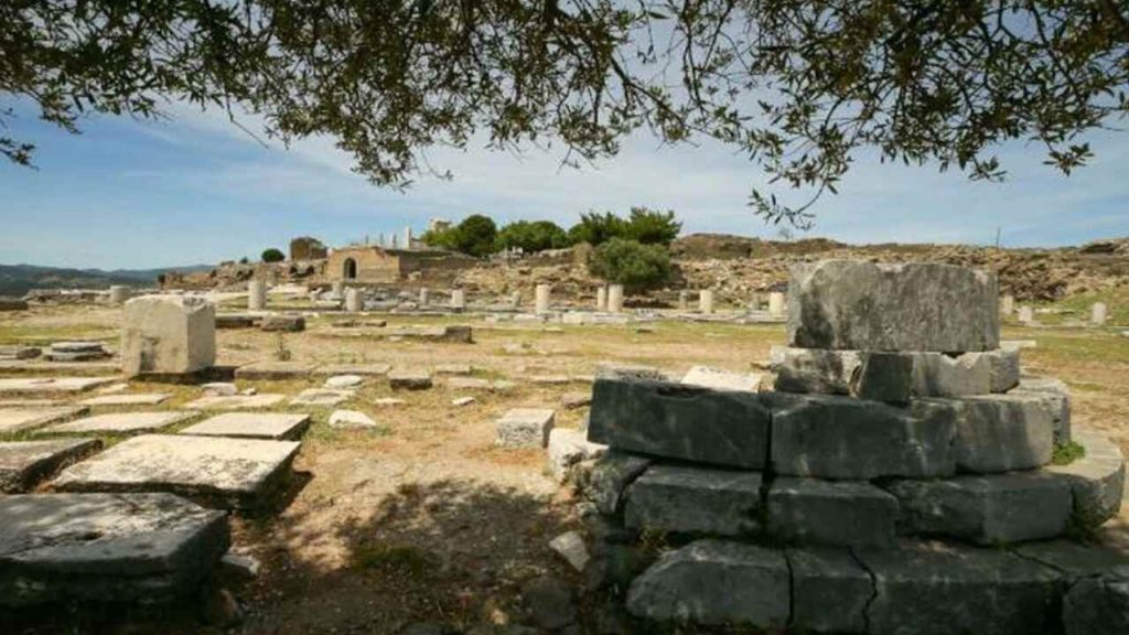 Antik dönem yazarlarından Pausanias, ” kentin bembeyaz mermerden yapılmış muhteşem bir Apollon Tapınağı’na” sahip olduğunu yazar.